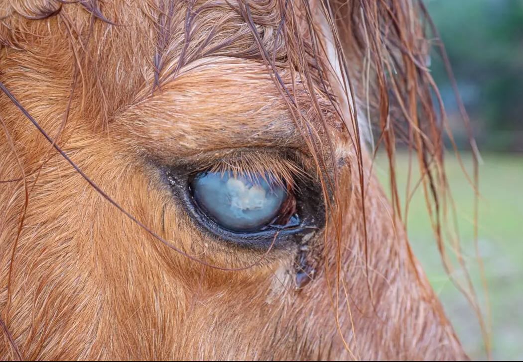 Eye conditions in horses are time sensitive. What may start as mild cloudiness can worsen quickly, potentially leading to permanent damage or even loss of the eye. Your horse should be seen by a vet THE SAME DAY.